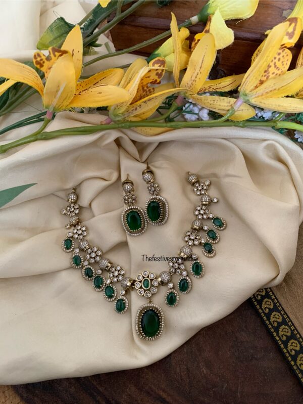 Emerald drops Victorian necklace set